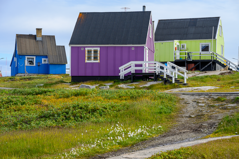 The population of Qeqertarsuaq is about 800 people and 400 Greenlandic sled dogs. They have a hospital and a dentist but do not have a midwife which means women must fly to a larger city to give birth.