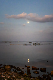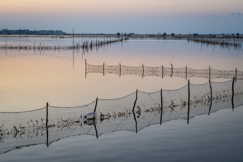 When we drove over the causeway yesterday on our way to Delft, I asked to stop so I could take photographs of the fishing nets and the many birds on both sides. Last night Indika suggested that he and Thushara pick us up early tomorrow to take us to the Jaffna Causeway which was just a 10-minute drive away. So, we did. We arrived at the causeway pre sunrise when it was cool, the water was calm, and Sri Lankans were using the causeway to run or walk alone or in groups. It was lovely. The moon was setting on the west side of the causeway and the sun was coming up on the east. The nets in a circle are for prawn farming while the other nets are for sea cucumber farming.