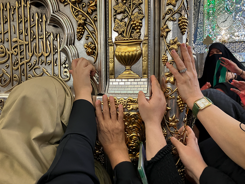 After checking into the hotel and taking a rest, we met up to enter the Holy Shrine. Men and women had separate entrances. In the women's entrance I was aggressively patted down by a woman who saw the surprise in my face and said "men." The patting in particular places was to ensure I wasn't a man sneaking into the women's side.