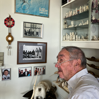 In the center photo below there is a small black and white photo of Hans, age 2, standing against a wall with his older siblings and parents. That photo was taken at Pituffik in 1953. All Greenlandic Inughuit were removed from Pituffik because the US and Denmark planned to build an air base on their land.