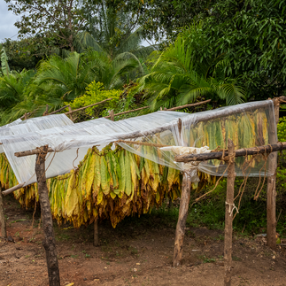 On our way back to our lodging in Sigiriya we stopped a couple of times to take photos of things we found interesting. Along the road there are many small community gardens. The gardens have electric fences to keep elephants and other large animals from plundering the crops. There are lookout towers above the crops where villagers take turns keeping watch over the crops by night. We also saw tobacco leaves drying roadside.