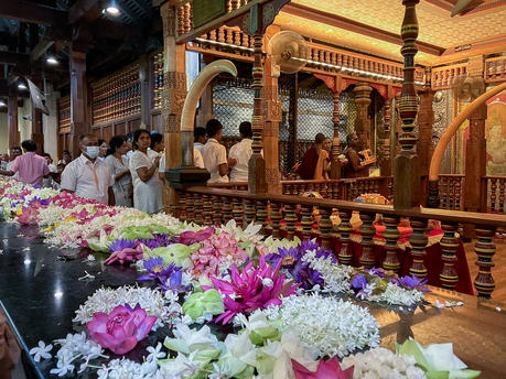 In the late 20th century there were two bombings that damaged the temple. The first was in 1989 by a militant group called JVP (a Marxist-Leninist communist party) who planned to steal the tooth relic. The second bombing was by the LTTE. Security is tight. The US Embassy in Colombo sent an advisory to US citizens to avoid crowded areas on Easter Sunday. It was the five-year anniversary of the Easter Day bombing of three luxury hotels and three churches (during Easter Sunday services) in and near Colombo by ISIS-related terrorist suicide bombers.