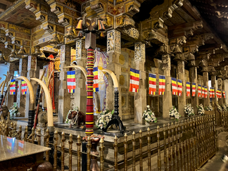 The Temple of the Sacred Tooth, home to the relic of the tooth of the Buddha, is situated within the Royal Palace Complex of the former Kingdom of Kandy. How did the tooth relic get to Kandy? That is a long story spanning many centuries and kingdoms. Here is an abbreviated version: